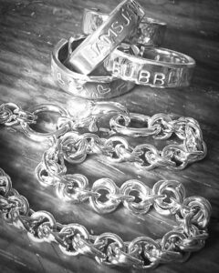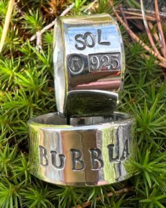 När jag gör mina smycken finns det ingen tanke på hur det skall se ut bara vad jag skall göra. Det är för mig ett spännande och roligt sätt att arbeta på.Smycket är mer än bara ett smycke. Det är en påminnelse om någonting som är viktigt att komma ihåg.Som tex kärleken till sig själv.Mina ringar har alltid instansat ordet KÄRLEK inuti.Utanpå kan du bestämma själv vad som skall stå. Något som är viktigt eller roligt för dig.